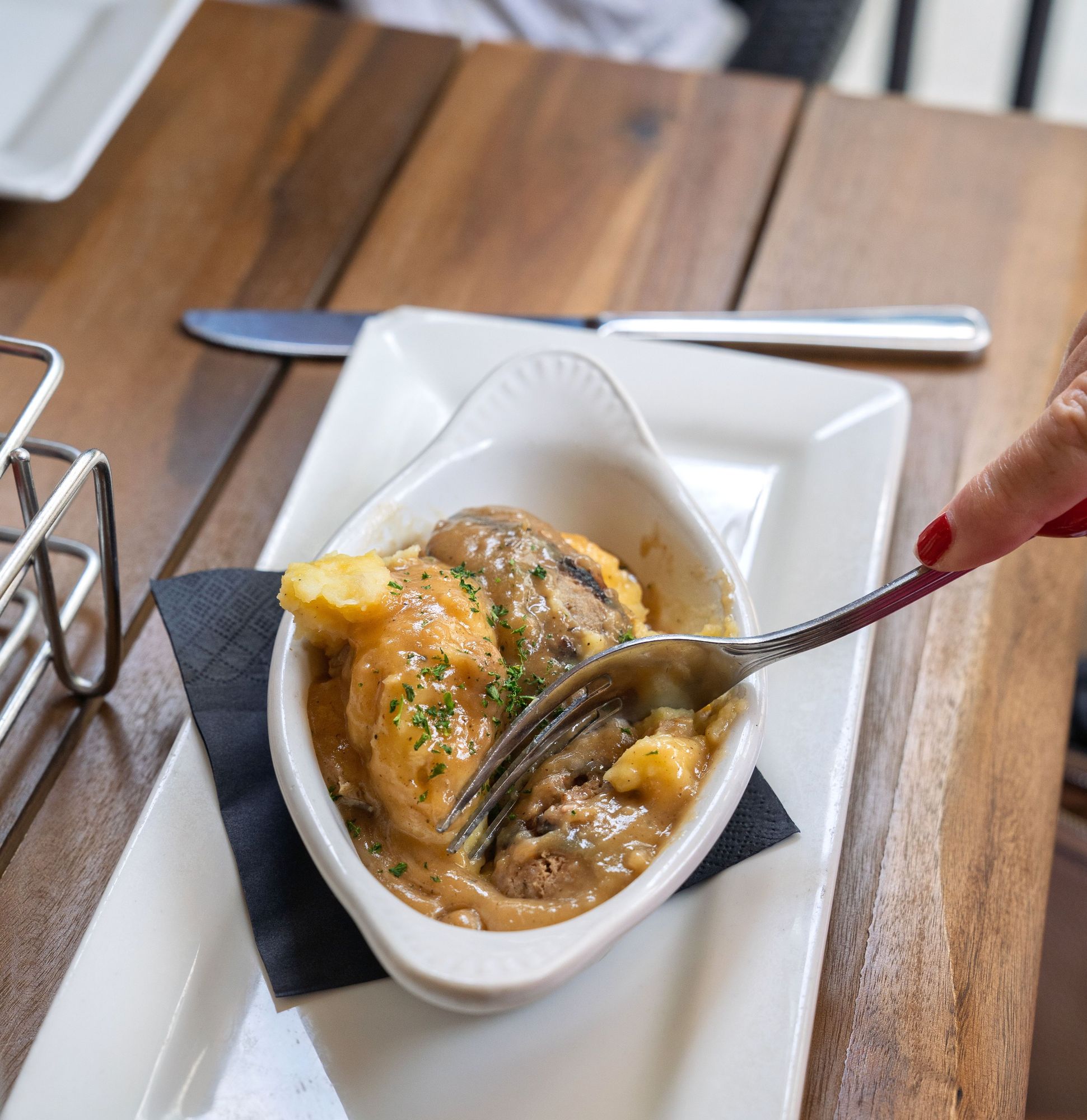 - Our hearty dishes may feature Scottish fare, a full-size burger, Fancy Garlic toast with prosciutto jam, Mexican tacos, cheese coneys, huge salads, chicken enchiladas, and much more!
